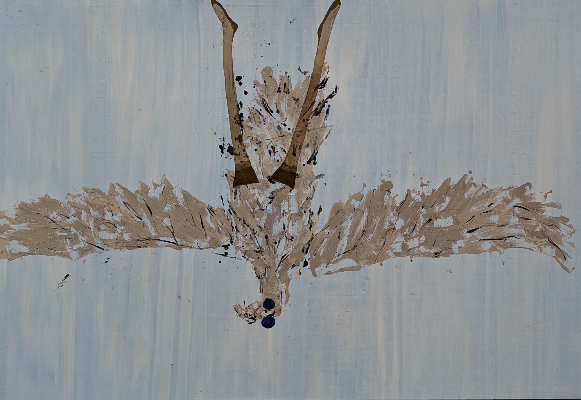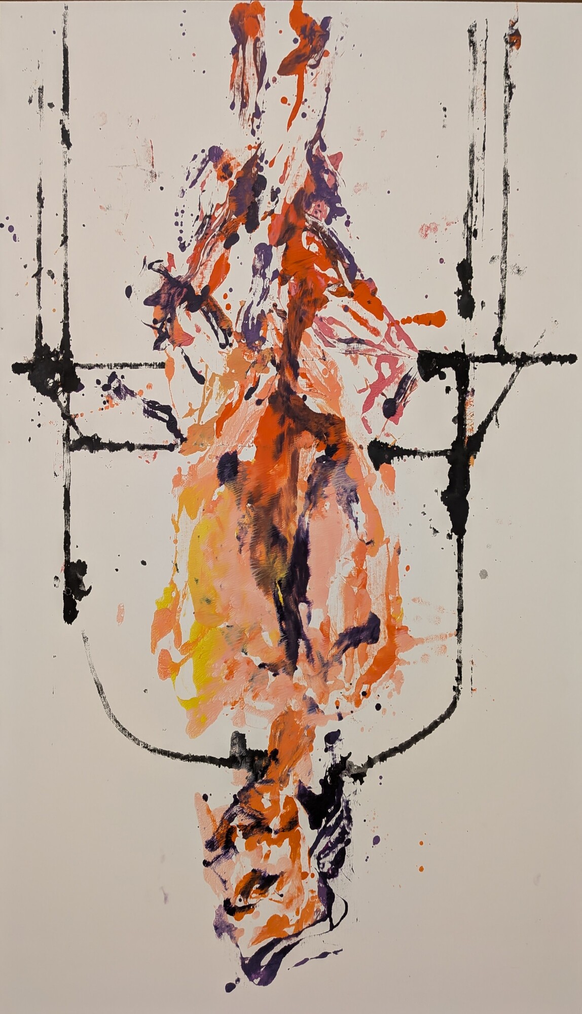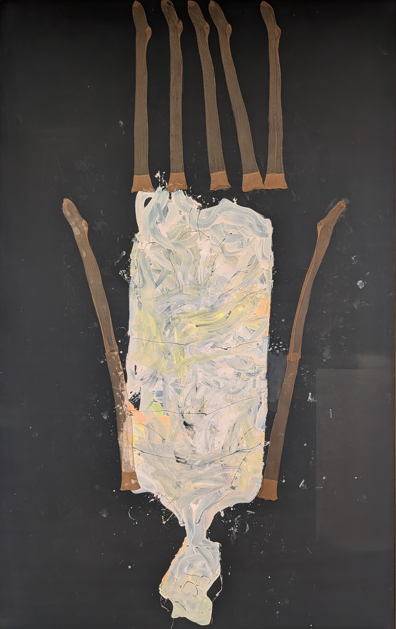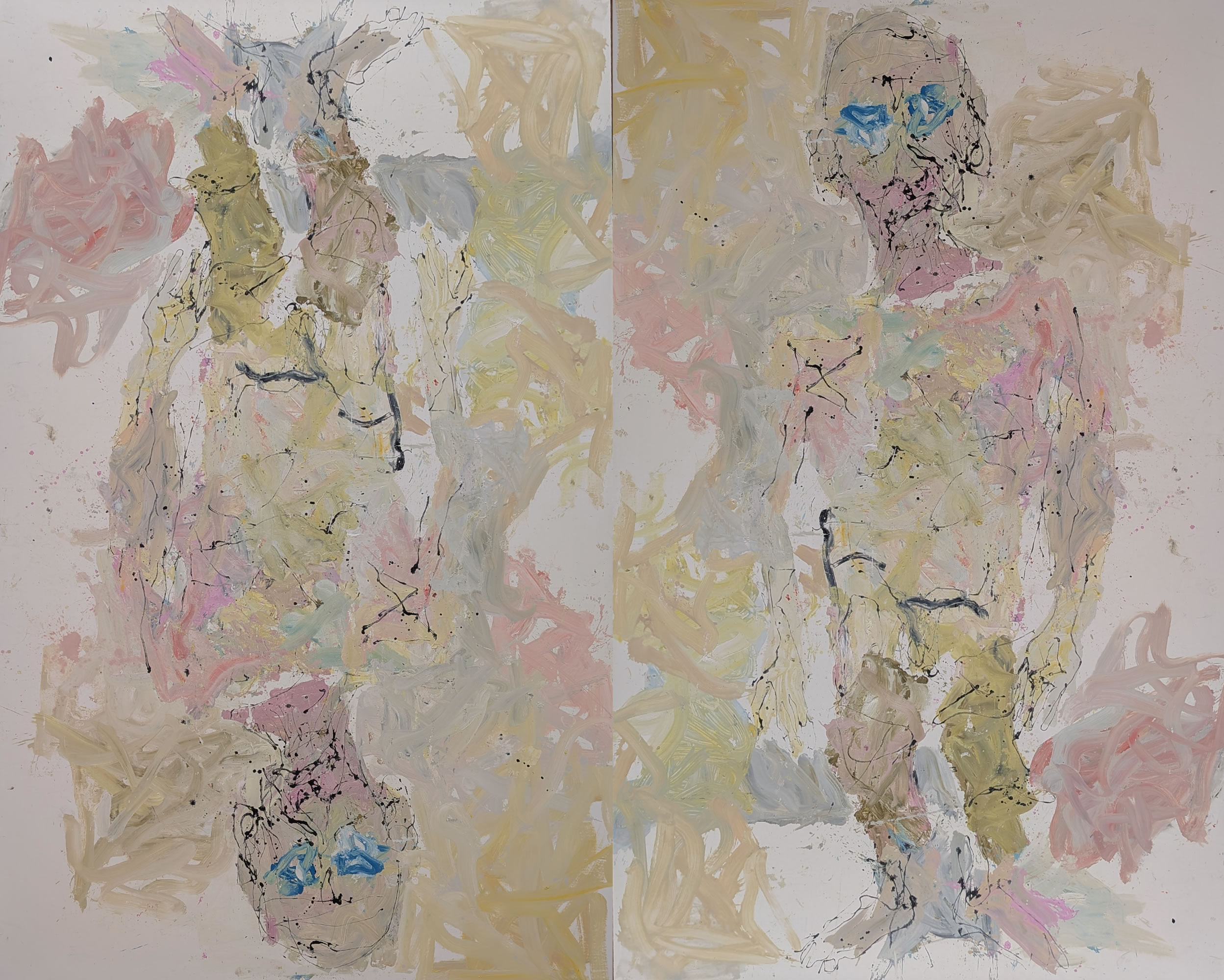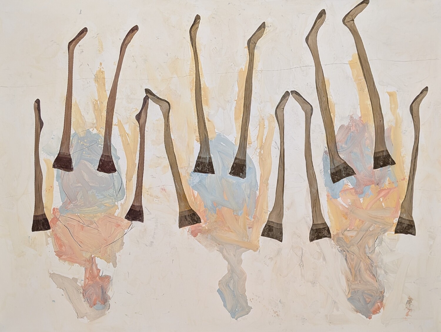 A primera vista parece que no hay gran dificultad en dibujar una figura deformada o unas piernas mal proporcionadas, y probablemente cualquiera podría intentarlo. El problema no está ahí. El problema viene cuando tienes que dibujar sobre un lienzo enorme, donde los errores se aprecian con mayor facilidad. Además, el uso del color, que puede parecer sucio, descuidado o random (como les gusta decir a mis hijas), está mucho más pensado de lo que parece. Trabajar con pocos colores, apagados y sin buscar que sean bonitos, tiene su truco. A mí de da la sensación de que todo esto se realiza a base de ensayo, error y decisiones constantes sobre cuándo seguir y cuándo parar. Esto no es Photoshop, no hay borrador posible, no hay vuelta atrás limpia. Todo queda ahí, conviviendo con lo que ya estaba, y eso exige mucha experiencia y mucho control, aunque el resultado no lo aparente. También, algo que me parece muy difícil es la capacidad de repetir este tipo de obras una y otra vez sin que se vuelva automático y parezca una copia de una copia. Si nos fijamos en la trayectoria de Baselitz, lleva décadas trabajando con las mismas figuras y gestos, y aun así parece que consigue seguir atrayendo al público. Mantener una carrera así con tan pocos recursos es, probablemente, lo que hace que algo que parece simple en realidad no lo sea en absoluto.