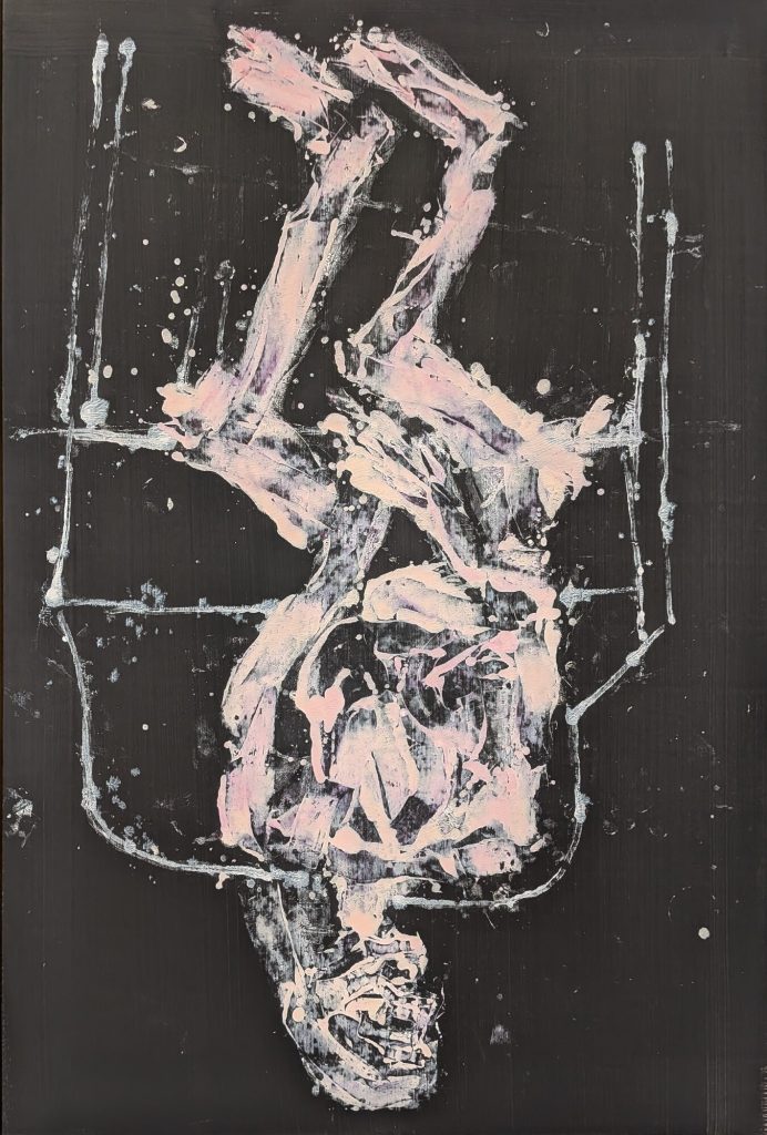 La continuación de la visita te lleva a las primeras obras invertidas. Estas obras llaman poderosamente la atención y, sin querer, mi cabeza volvió a jugar con ellas. Saqué fotos y empecé a girarlas para ver cómo se verían si no estuvieran invertidas y os puedo asegurar que algunas me resultaron sobrecogedoras y otras incluso graciosas. En ese juego me pregunté qué le parecería a Baselitz que girásemos sus obras y llegué a la conclusión de que, probablemente, no le molestaría en absoluto. Al hacerlo, la figura recupera protagonismo, se vuelve más literal, pero también más torpe o grotesca. Según lo que he leído, Baselitz ha dicho en varias ocasiones que no le interesa el motivo, sino la estructura, y al girar las obras entendí mejor que la figura manda demasiado y el cuadro queda en segundo plano. En su posición original no te cuentan nada y te hacen fijarte en cómo se sostiene la pintura.